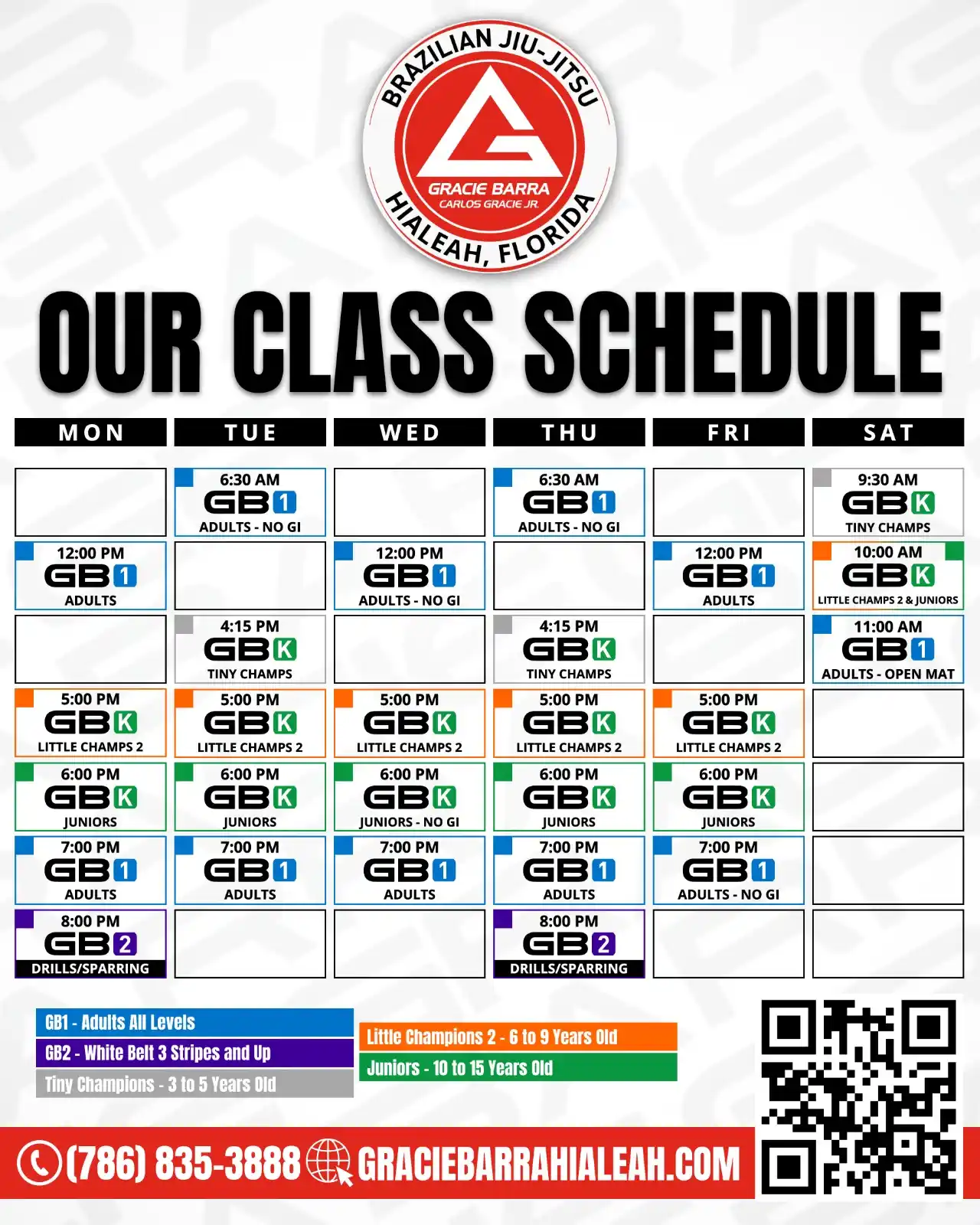 We understand life can get busy, but with our flexible schedule, you can easily find a time that fits into your daily routine and your family’s as well. Whether you’re looking to embark on your own Jiu-Jitsu journey or introduce your child to the art, we offer a variety of class times that perfectly accommodate any schedule. Take the opportunity to schedule a class at Gracie Barra, the ideal place to grow, learn, and develop in a safe and welcoming environment.